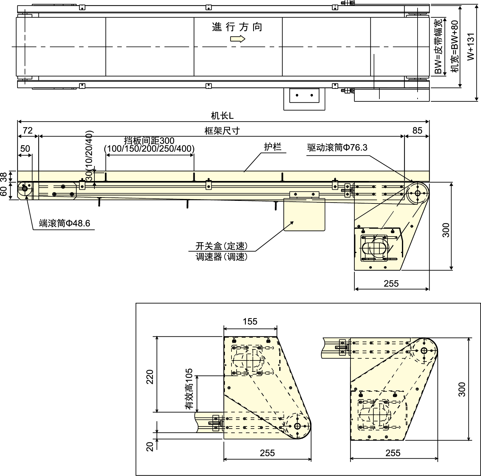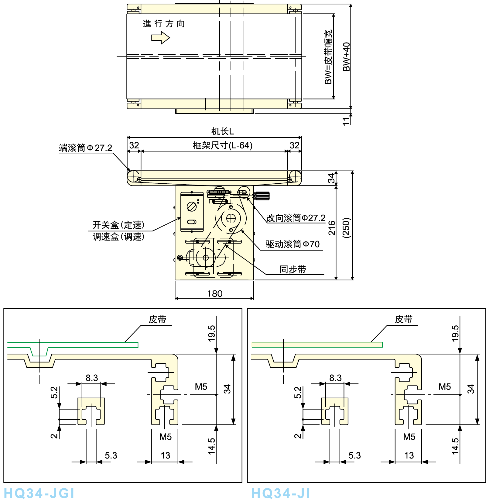 ● Acesta este tipul standard de transportor cu centură de 34 mm, centrul de conducere este mutat de centura de distribuție.