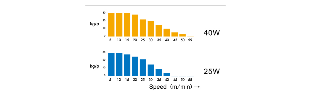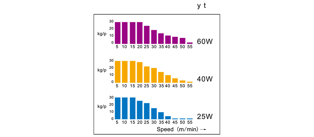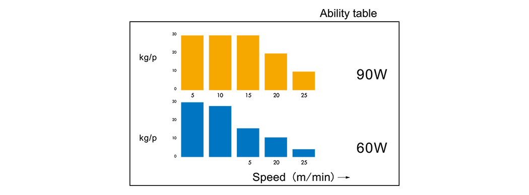 | 300 ~ 3.000 | 40W | Viteză fixă 60W, viteză variabilă 90W |