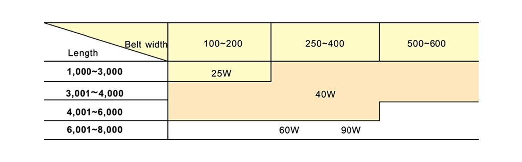 | Putere \ Lățimea centurii | 100 ~ 500 |