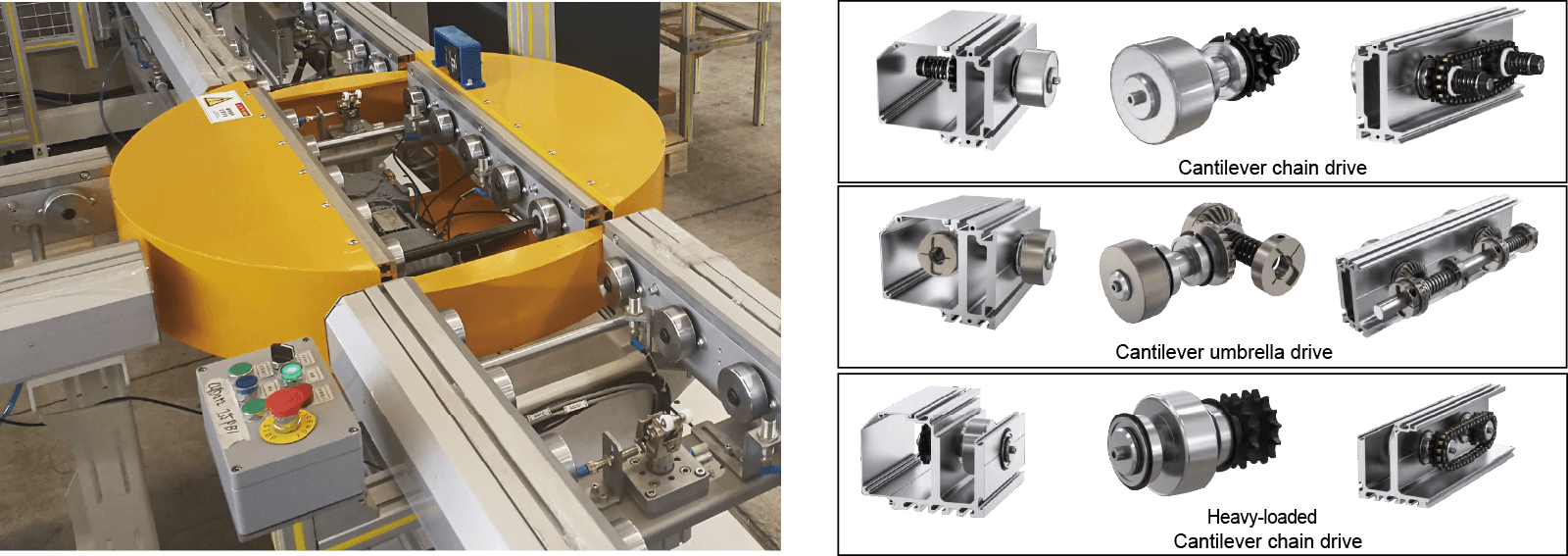 Rolurile transportoare ale lanțului Mac-C, folosind transmisia ambreiajului de frecare, role și l...