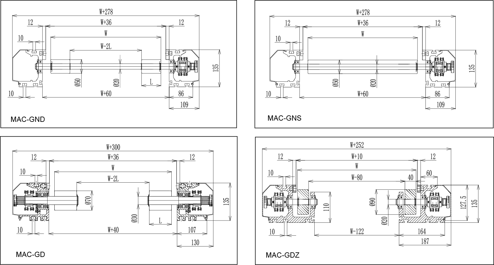 | Tip | Mac-Gnd (tip arbore continuu) | Mac-GNS (tip tambur) | Mac-GD (structură cantilevere) | Mac-GDZ (tip greu) |