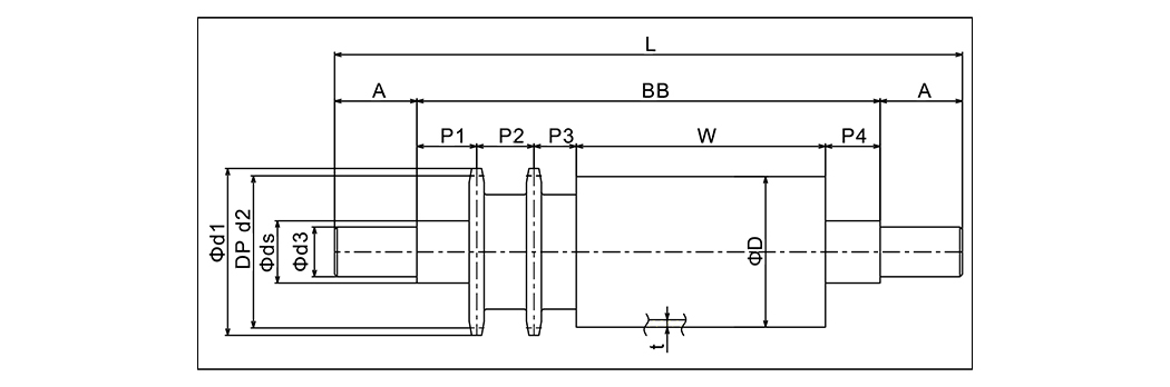 | Tip | Dimensiunea rolei | Lățime de role | Matenal cu role | Bearng | Diametrul arborelui | Pinion | D1 | D2 | D3 | O | L | BB | P1 | P2 | P3 | P4 |