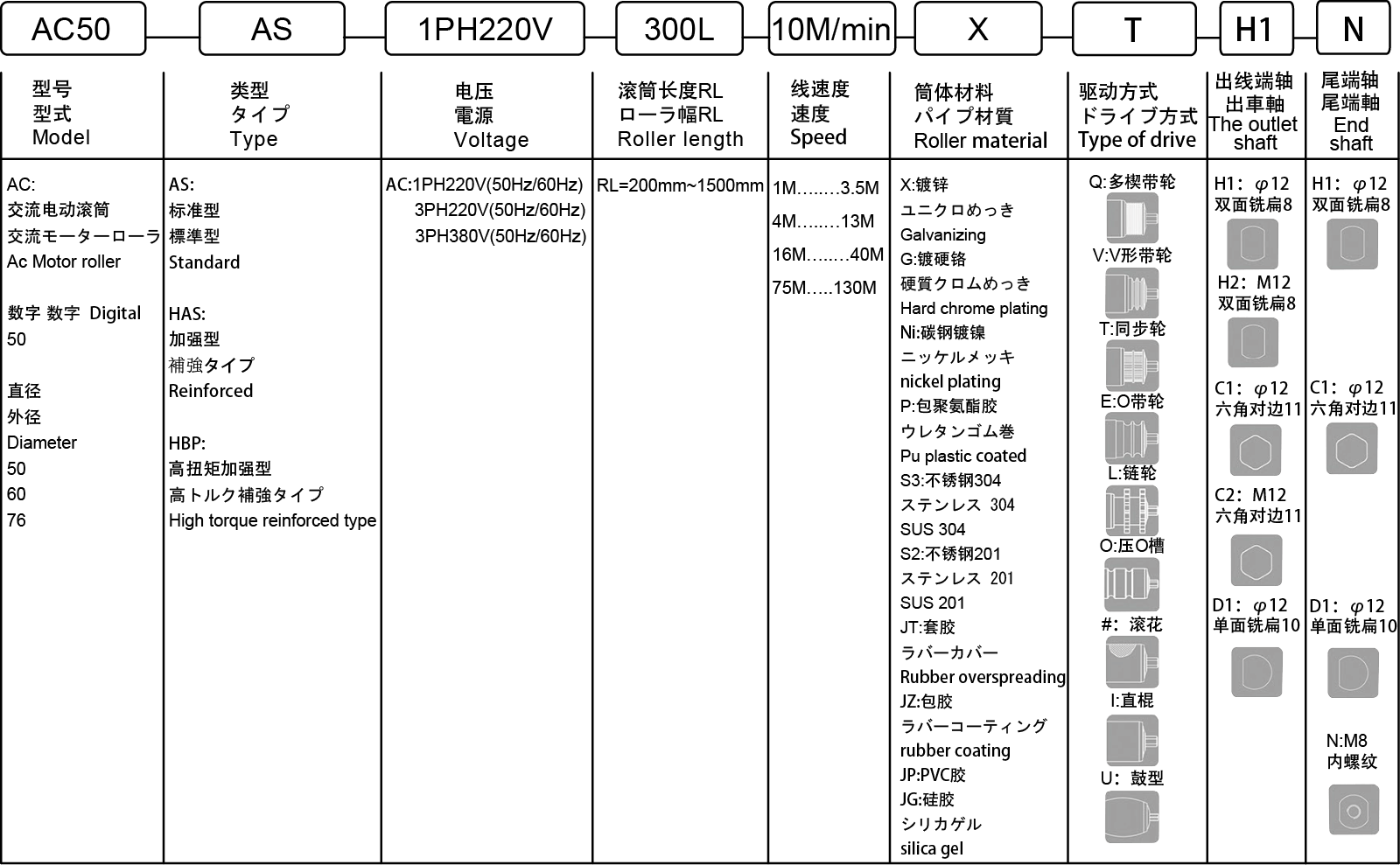 Rolele cu motor AC sunt motoare cu tambur electric care funcționează pe tensiune de curent alternativ. Rolele de motor AC Wuxi Huiqian pot fi personalizate pentru diferite tensiuni și dimensiuni pentru a se potrivi cu diverse scenarii de aplicații.