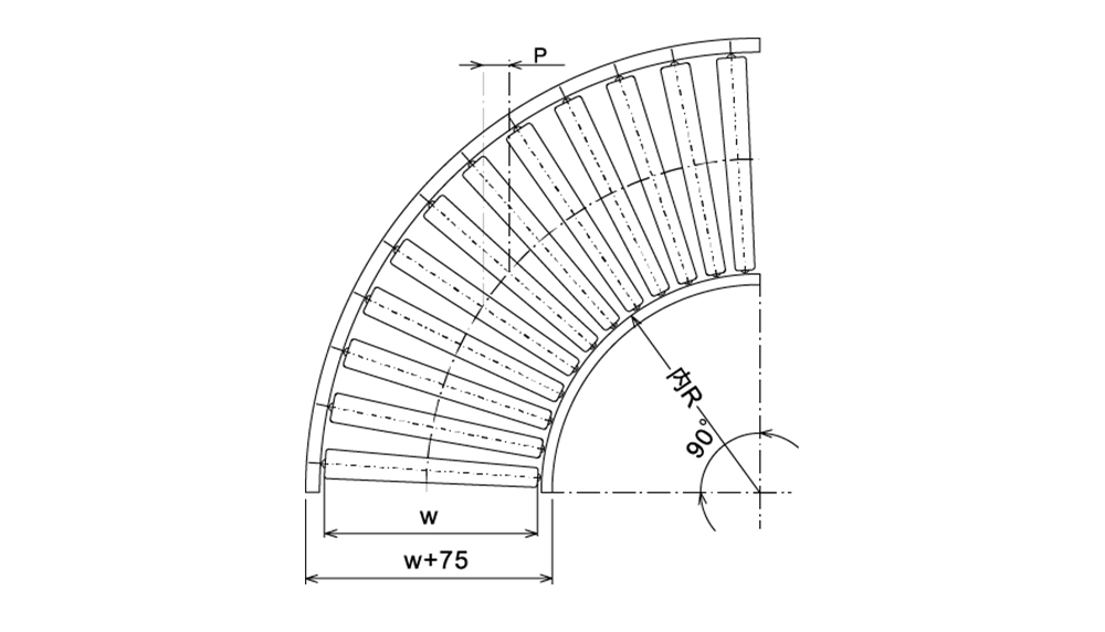 Cunoscut și sub denumirea de transportor cu role de curbă, transportorul cu role conice permite rotirea unghiurilor de 30, 45, 60, 90 și 180 de grade. Este utilizat în principal pentru schimbările de direcție în liniile transportoare, cu 30, 45 și 60 de grade adesea utilizate pentru ramificări și contopitoare. Acest transportor este un tip ușor, cu o capacitate de încărcare, în general, care nu depășește 200 kg.