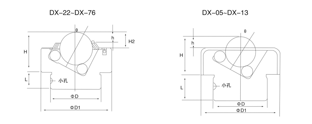 | Mod l | Numbe r | Principal Mingea | θ | H | H2 | h | L | D. | D1 | în afara centrului | (kg) Greutate | (kg) Încărcare Capacitate |